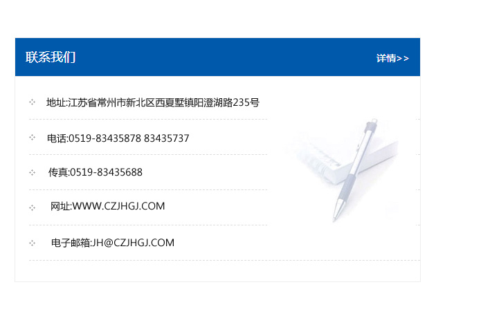 傳真:0519-83435688    郵編:213135    網址:WWW.czjhgj_com.hfyhbg.com    電子郵箱:JH@czjhgj_com.hfyhbg.com